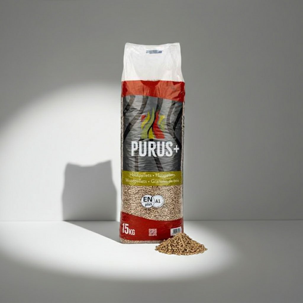 Purus+ Pellets 15 kg zijn 100% zachthoutpellets, die bekend staan als een van de meest voordelige pellets op de markt.